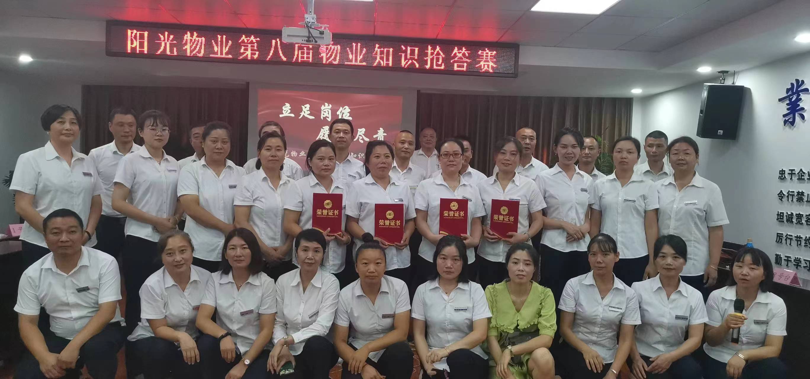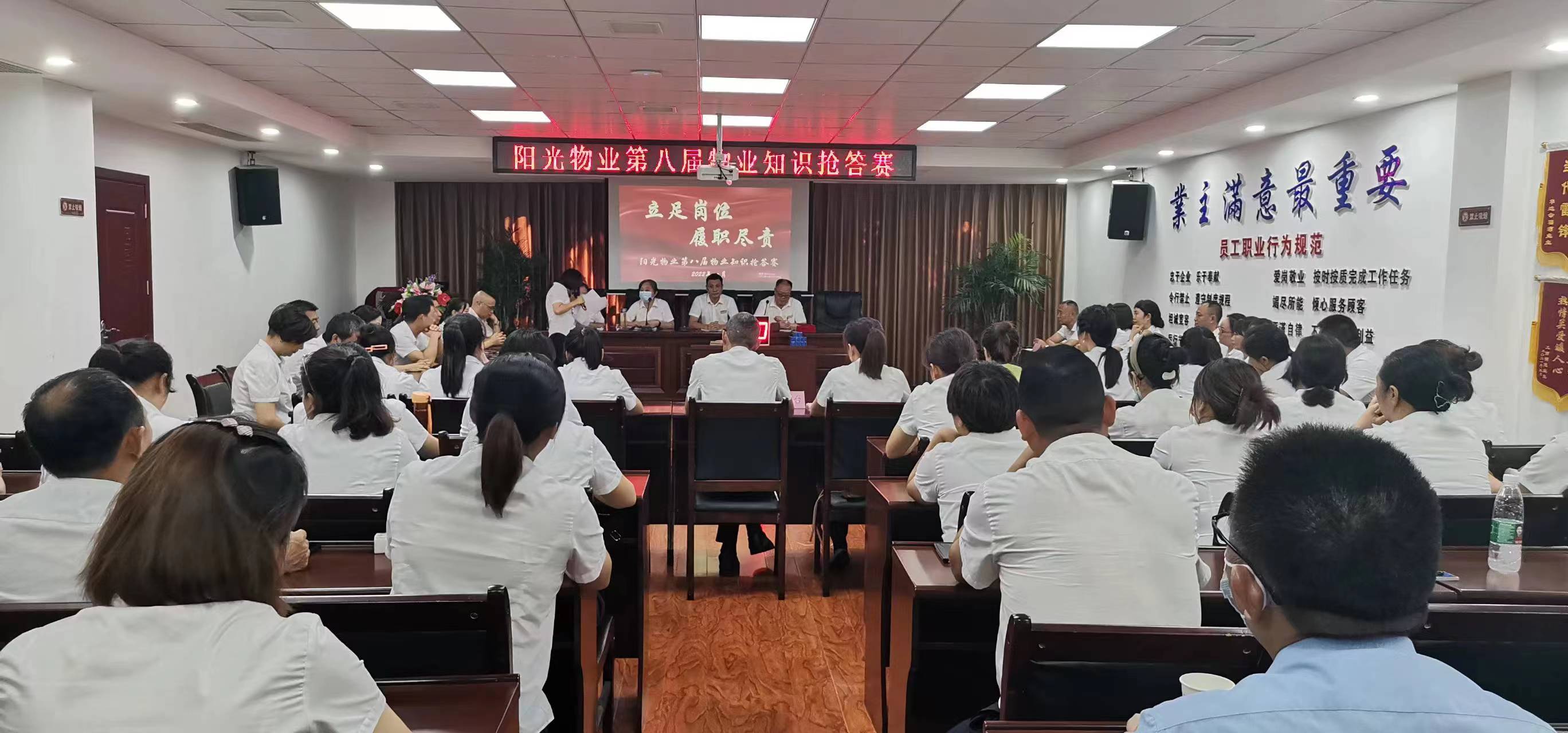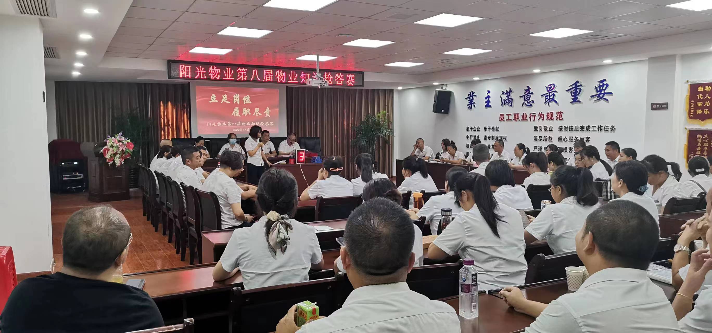 8月13日上午,陽光物業(yè)公司總部會議室傳來一陣陣熱烈的掌聲,“閉路監(jiān)控鏡頭應(yīng)根據(jù)哪些部位進行區(qū)分?設(shè)備房每平方米需要多大的亮度?房屋的建筑主體具體包括哪些部位?”這是陽光物業(yè)、沁園春物業(yè)的全體管理人員在開展“立足崗位、履職盡責(zé)”物業(yè)管理知識搶答賽活動。